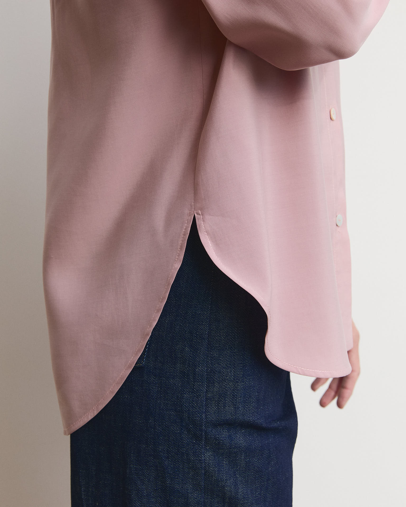 Un capo essenziale e intramontabile, la camicia classica Aiga nasce da tecniche tradizionali di camiceria reinterpretate in chiave moderna. La vestibilità è comoda e leggermente morbida, con la spalla appena accennata e una linea ad A che accompagna il corpo senza costringerlo. La lunghezza, ispirata alle camicie classiche da uomo, permette di indossarla sia dentro i pantaloni che lasciata fuori, magari sotto un gilet: il profondo orlo a V dona carattere e un tocco sartoriale al modello.