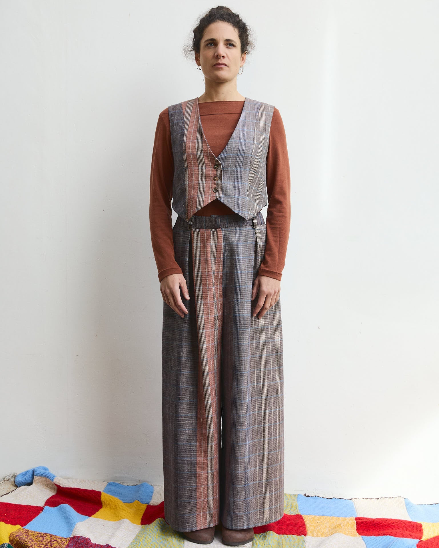 L’ho immaginato come compagno del gilet Pecìn, per un completo essenziale e senza tempo. Ma sta benissimo anche da solo: con maglioni morbidi, camicie fluide, o insieme ai capi che già ami.