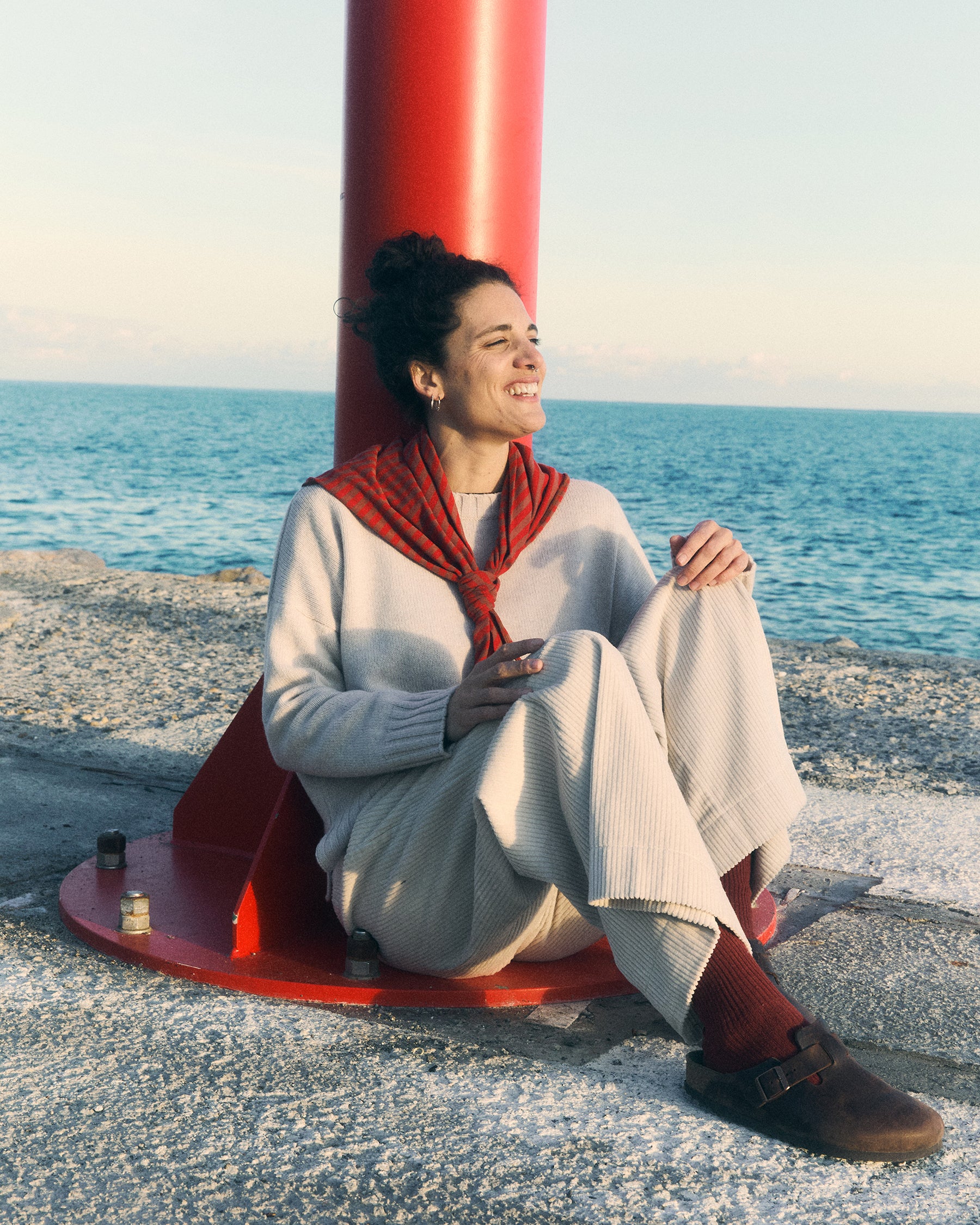 Questo è il mio modo di fare artigianato: capi lenti, realizzati con fibre naturali e materiali recuperati, pensati per durare davvero. Piccole serie, anche pezzi unici, linee morbide e un'eleganza disinvolta che non rincorre le mode.