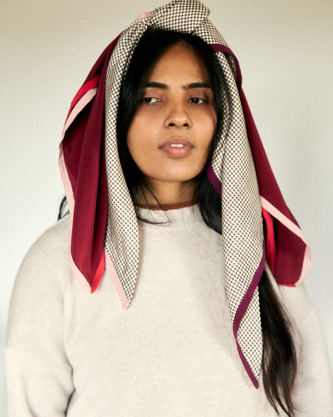 Il foulard Niù nasce dal desiderio di dare nuova vita ai tessuti rimasti, trasformandoli in accessori speciali, leggeri e versatili: piccoli dettagli che completano un outfit e raccontano una storia.