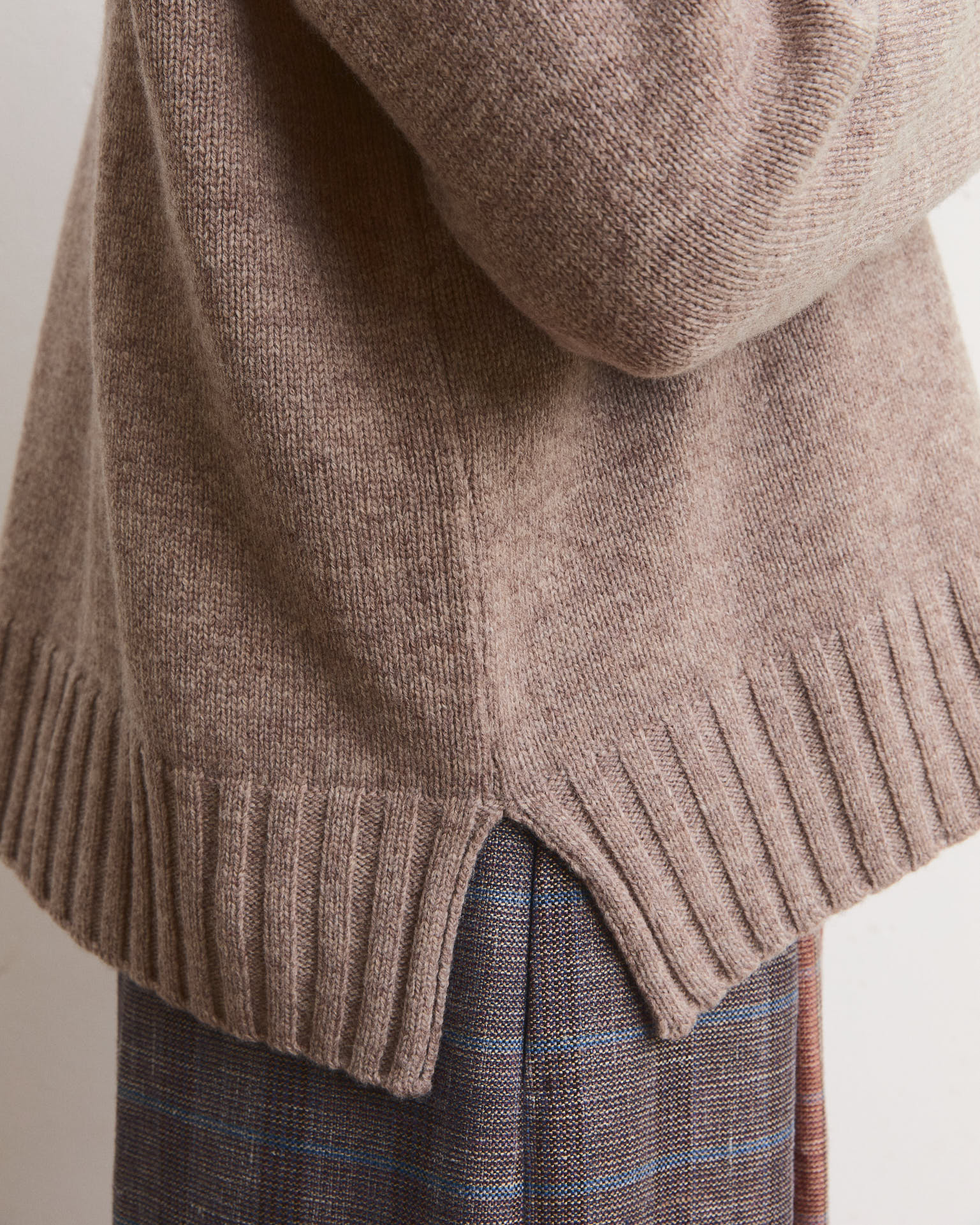 Ha un girocollo a coste, una forma a scatoletta e spacchi laterali che aiutano il maglione ad adattarsi a diverse fisicità, rendendolo estremamente versatile.