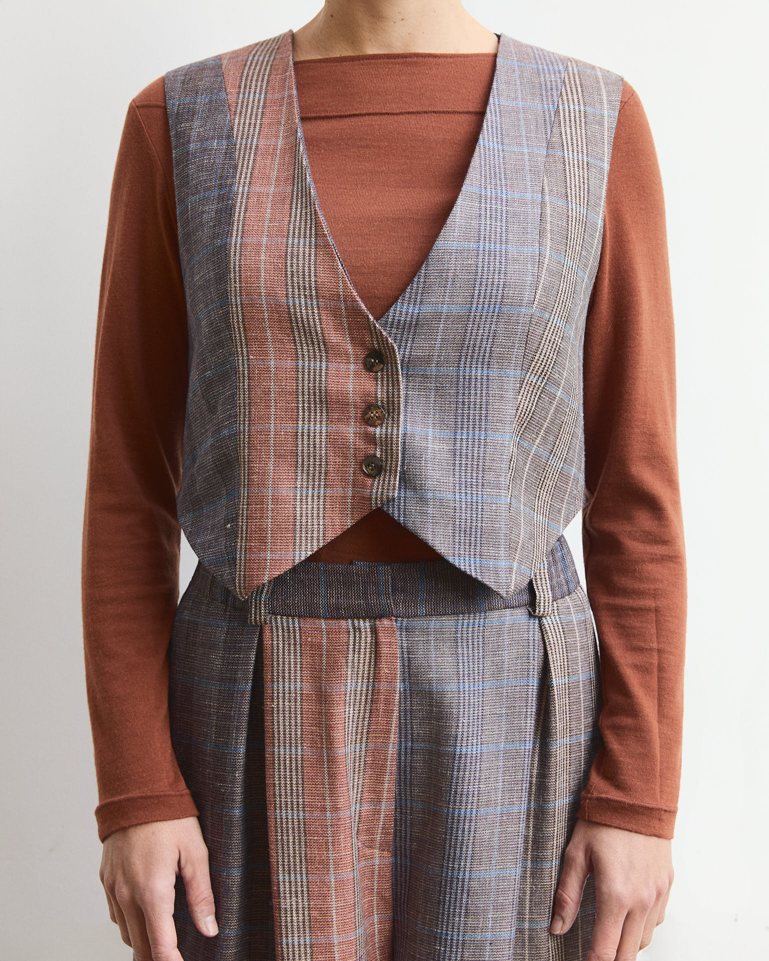 Questo è il mio modo di fare artigianato: capi lenti, realizzati con fibre naturali e materiali recuperati, pensati per durare davvero. Piccole serie, anche pezzi unici, linee morbide e un'eleganza disinvolta che non rincorre le mode.